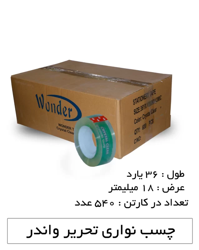 چسب نواری تحریر واندر از چسبهای باکیفیت موجود در بازار به شمار میرود که با عملکرد عالی خود توانسته محبوبیت زیادی را در میان مصرف کنندگان به دست بیاورد. این چسب نواری مهمترین وسیله مورد نیاز ادارات، مدارس و …. به شمار میرود زیرا با کمک آن میتوان هم انواع کاغذ و مقوا را به هم متصل کرد و هم میتوان کاغذ و مقوای مهم را ترمیم نمود.